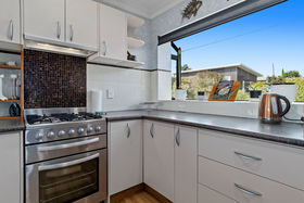 On the upper level of the home, you'll find a modern open plan kitchen with plenty of storage and counter space. The home has bottled gas which services both the hot water and gas hobs. In the open plan lounge, you are naturally drawn towards the fabulous water view which looks out across the Omokoroa Bowling Club and out to the Kaimai Ranges. Step through slider doors onto a covered deck where you'll witness breath-taking sunsets. To the rear of the home, close to the upstairs kitchen is a covered deck, sheltered with having awning sides. Roll up the awning and pop the shade sail up so it provides excellent shelter over the extended deck - a perfect spot to sit and entertain family and friends. There are two large bedrooms, the master takes in the beautiful view and has an abundance of wardrobe space. The family bathroom has a separate shower and full bath and for convenience a separate WC.